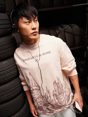 A creative shoot for men's oversized t-shirts features models in bold prints against a dark black backdrop. Stacked tires add industrial grit, enhances the edgy, confident vibe of the bold designs.